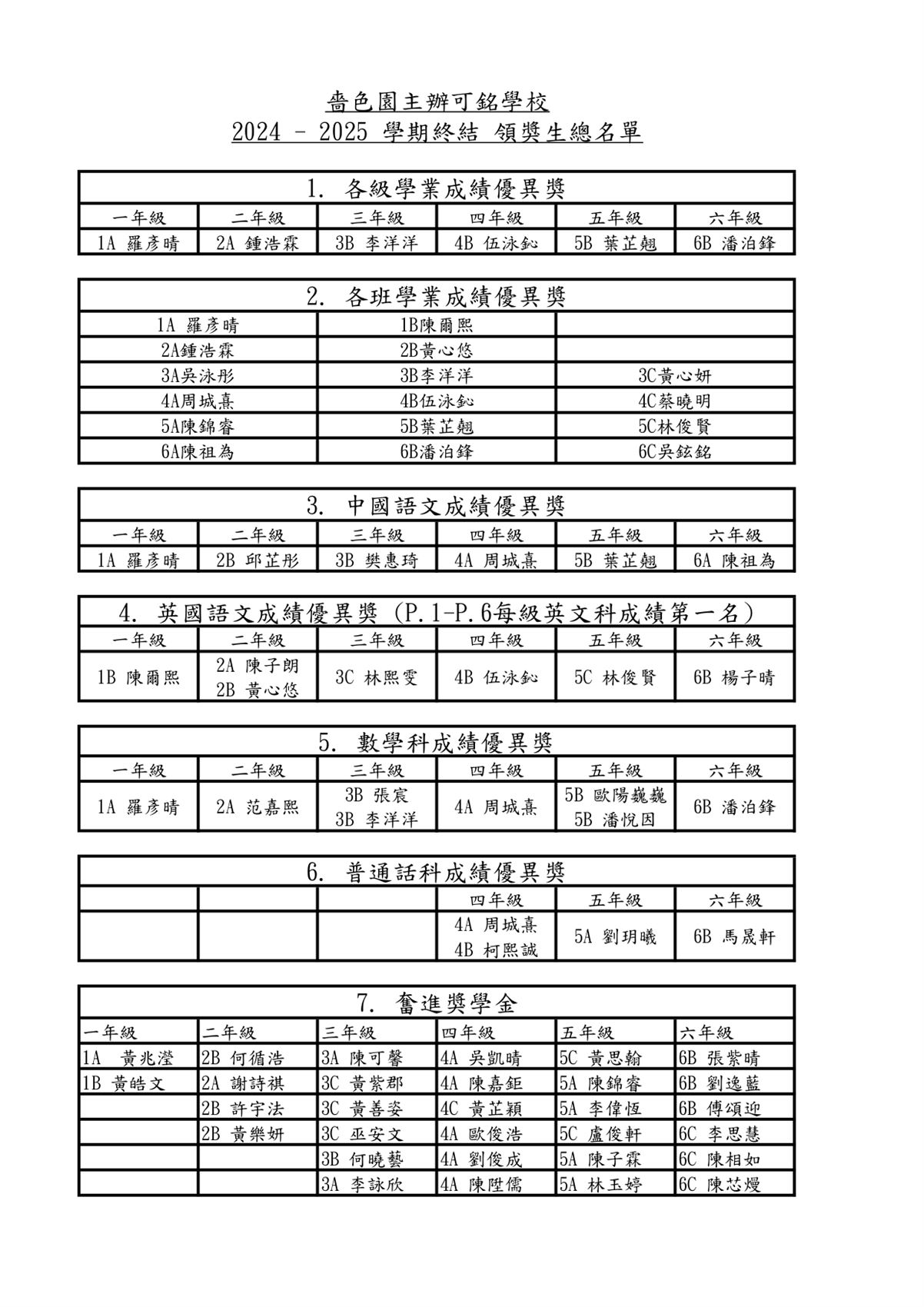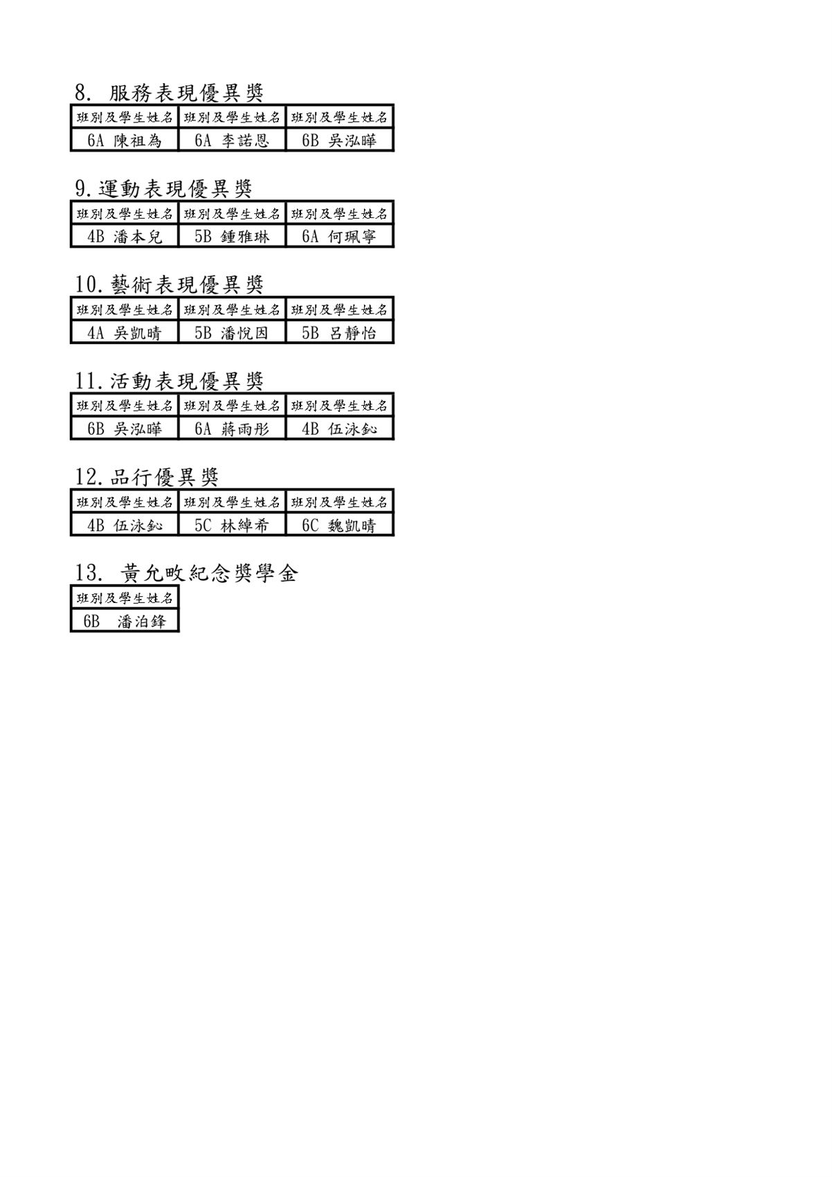 獎學金名單