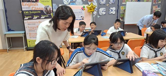 在英語課堂中,學生們通過互動遊戲和歌曲,重溫英文字母及學習英語口令,建立良好的學習常規。